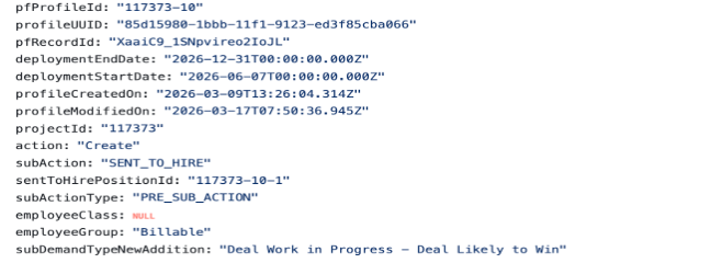 Followed by Resource allocation date should be sent with CandidateType as 'EXTERNAL_HIRE'.